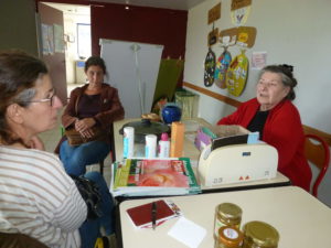 Pascale a proposé un atelier tawashi (fabrication d’éponges avec de vieilles chaussettes) :