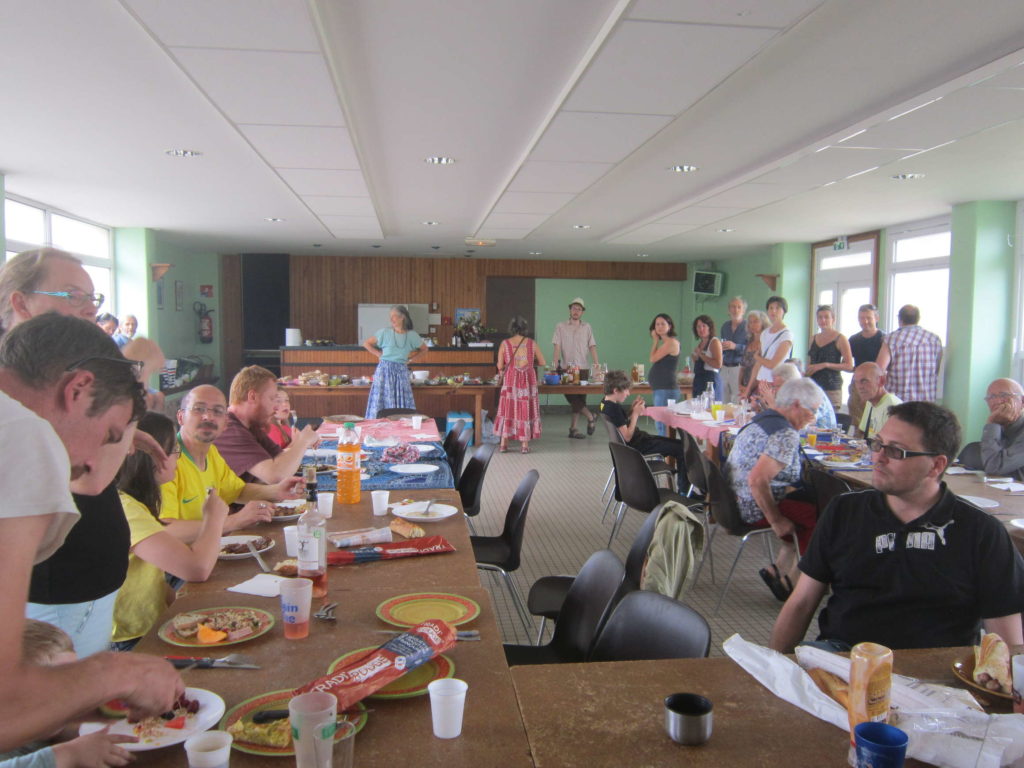 Merci à tous les participants dont les personnes de la paroisse qui nous ont invités à utiliser leur Salle de l’Espérance avec sa grande cour enherbée (et qui ont fait le grand ménage, à la fin, avec 2 membres du Sou).