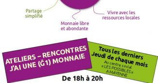 Atelier-rencontre « J’ai une monnaie » / Mayenne Venez nous rencontrer tous les derniers jeudis de chaque mois, au centre social Les Possibles (44 place Gambetta,...